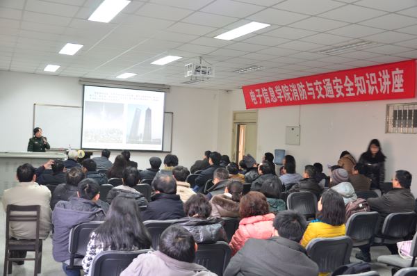 邀请到了成都市公安消防支队的秦斗参谋,在基础教学楼A座303教室举行了消防与交通安全知识讲座。