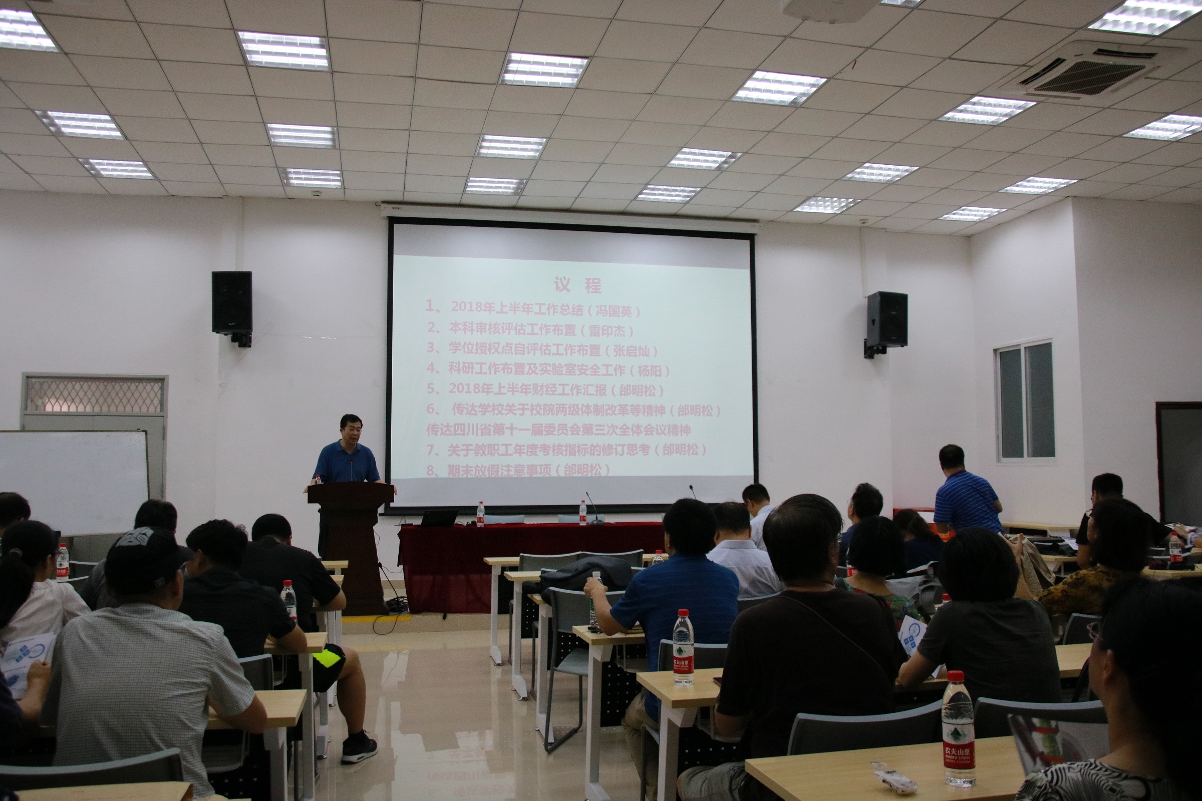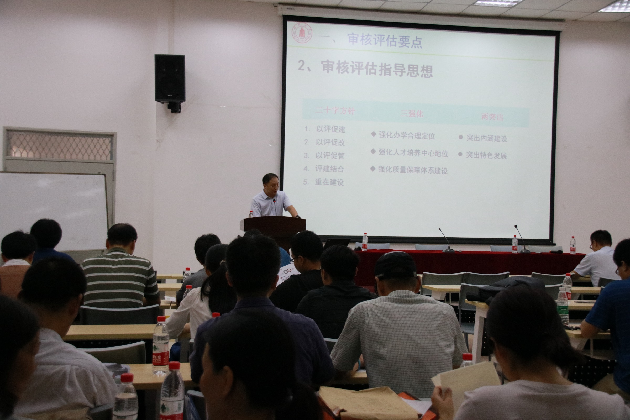 全体领导和教职工在西五教附101会议室召开了学院本科教学工作审核评估推进会。