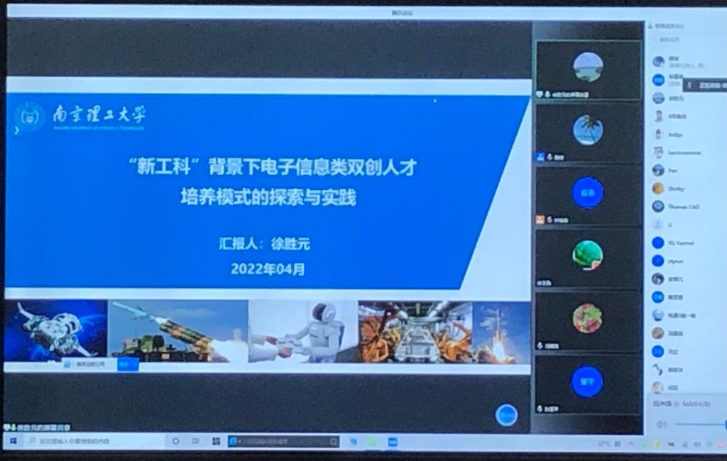 随后,学院特邀的南京理工大学自动化学院徐胜元教授线上作报告。作为国家杰出青年科学基金获得者,教育部创新团队学术带头人,徐教授的专题报告《“新工科”背景下电子信息类双创人才培养模式的探索与实践》,从新工科专业建设要求、深化课程改革,优化课程体系,提升教学设计,促进知识、能力、素质的有机融合等进行了深入的交流和探讨。