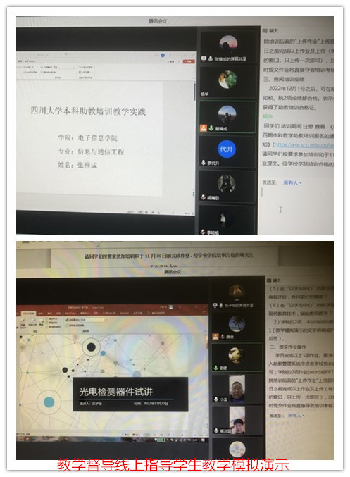 在教学实践模块培训部分,学院请了教学经验丰富、多次参与培训的教学督导教授们承担。在腾讯会议线上平台每位学员不限题目及形式就一个“问题”或“理论”进行5分钟的教学模拟演示,教学督导对学员进行点评、指导,并热情传授课堂教学经验。
