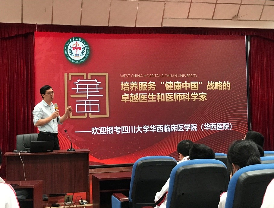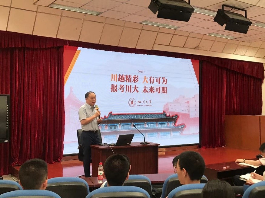 副院长雷印杰教授带队,化学学院副院长郑成斌教授、华西临床医学院王涵博士组成招生宣讲团,于2023年4月18日下午赴四川师范大学附属中学开展招生宣传工作,近200名高三年级学生参加了本次宣讲活动。