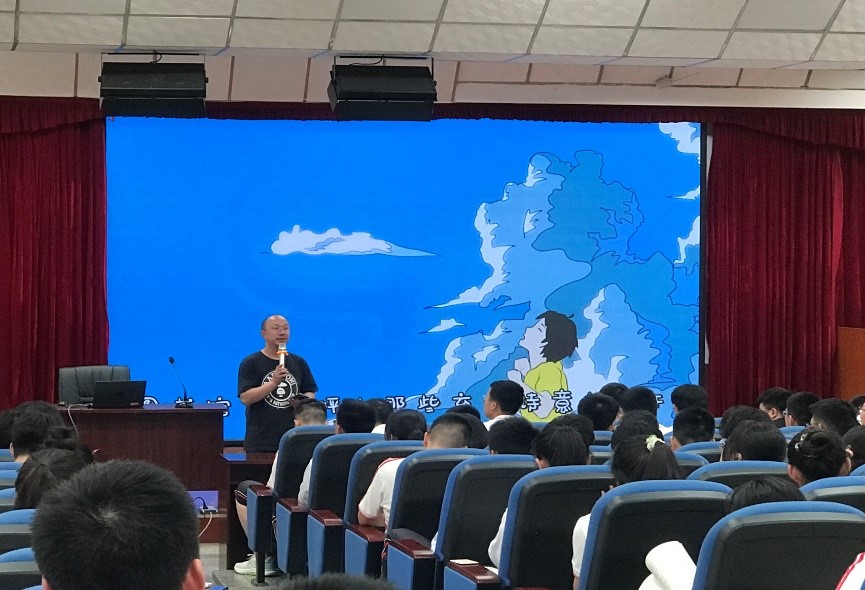 宣讲开始之前,由川师附中的教务处副主任李兴福老师隆重的介绍了本次宣讲团,并获得了同学们的热烈欢迎。宣讲正式开始后,首先由MX动漫
