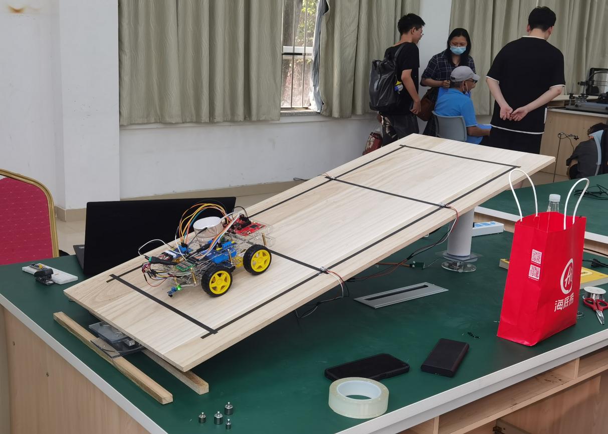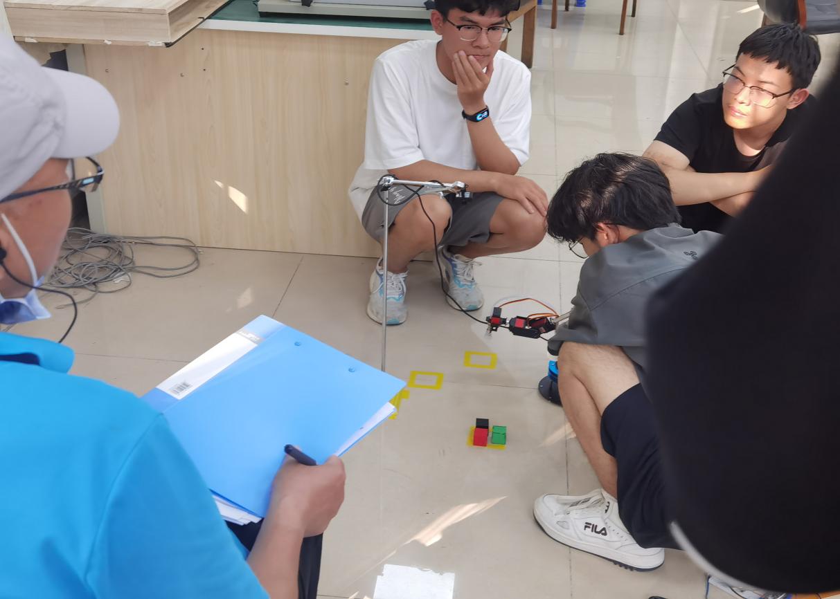 19日下午,选拔正式开始前各参赛小组已提前到场完成调试。14:30,选拔正式开始。参加第二轮选拔的有来自“A题:电动小车动态测重系统”、“B题:自动分类抓取机械臂”、“C题:信号合成电路系统”三个选题方向的共27个小组,各小组按照顺序展示自己的作品、讲解设计思路、深入问答沟通,测评专家按照顺序严格核对作品的每一项功能、完成度及效果,并按照测评表进行打分。