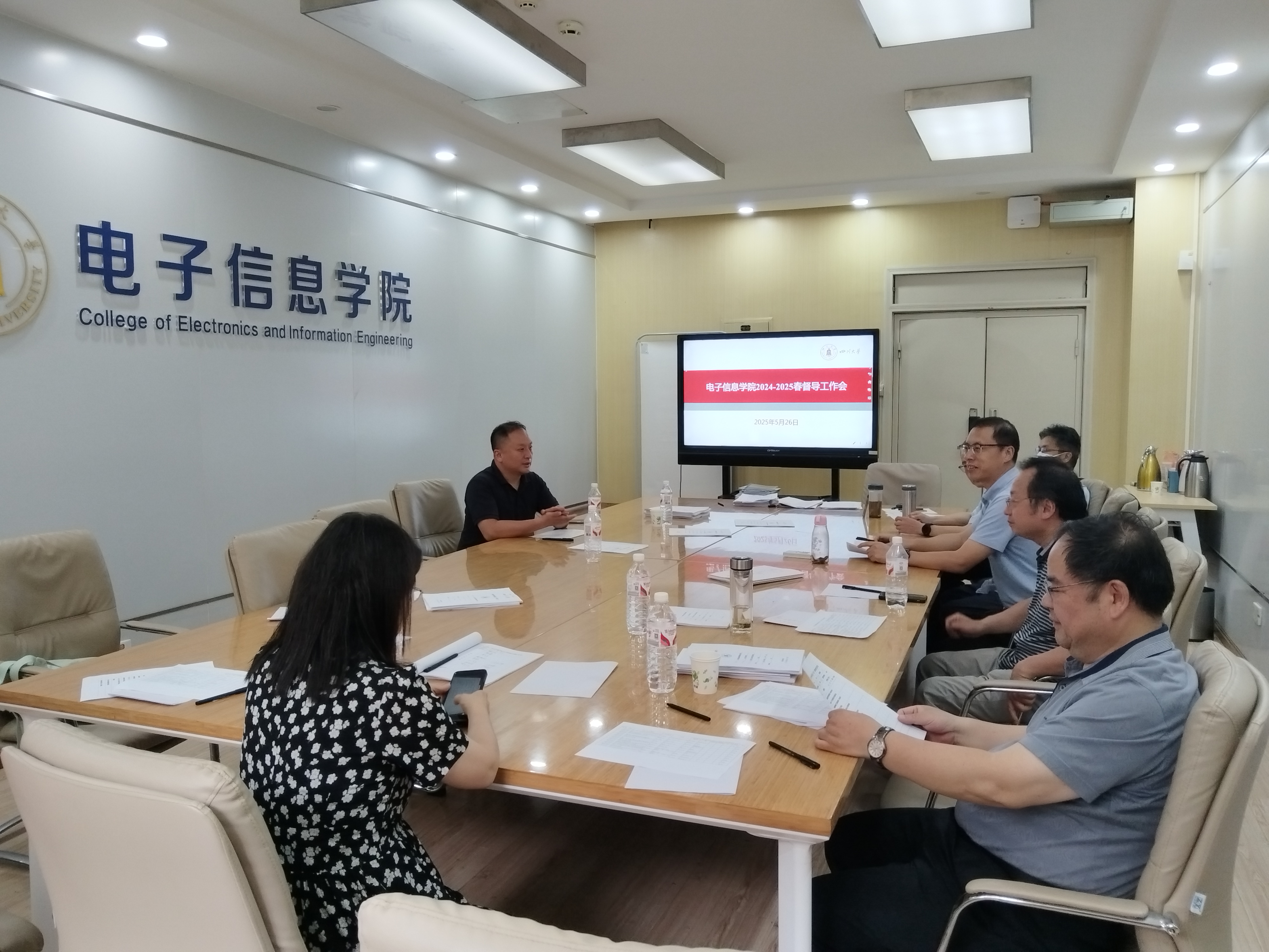 于2025年5月26日在基础教学楼A110B会议室召开2024-2025学年春季学期教学督导工作会。学院教学督导参会,会议由教学副院长兼督导组组长雷印杰主持。