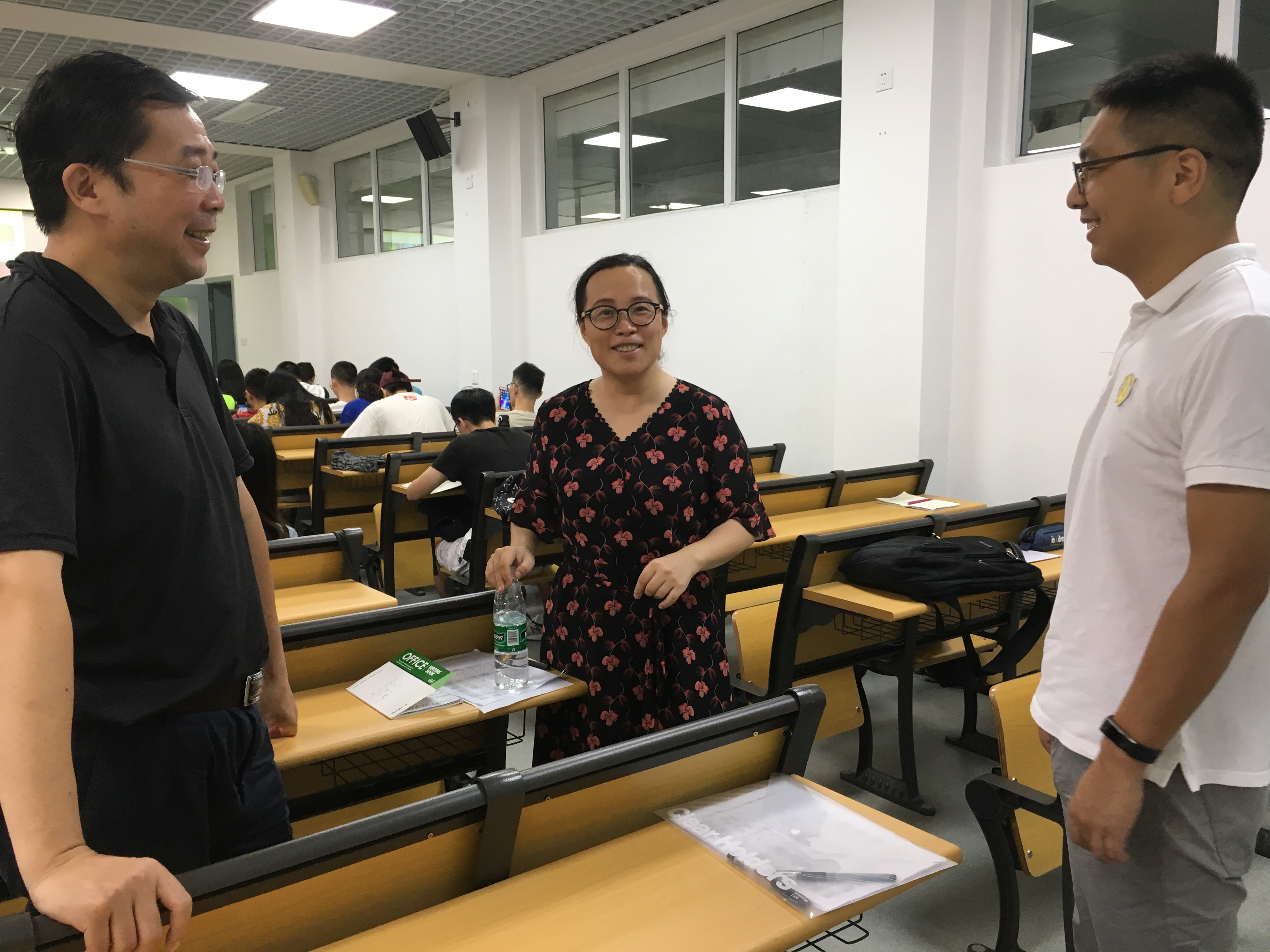 在9月3日新学期正式行课的第一天,邰书记在望江基教检查了《交换技术》、《数字信号处理》课程的教师提前到岗及教学准备情况,在三教听取了冯国英院长讲授的《波动光学》和闫丽萍老师讲授的《电磁场与微波技术》课程。课间休息时,邰书记与老师亲切交谈,了解课程设置、课堂互动情况,要求老师做到教书育人,在传授知识的同时将社会主义核心价值观教育贯穿于教育全课程,坚持正确的价值引领。邰书记听课时,见到正在进行教学督导工作的学院教学督导陈元亨教授向他表达了感谢和问候。9月4日冯国英院长教学检查中进入课堂听取了《通信电子线路》和《嵌入式系统设计》课程,并在课后和老师交流,希望青年老师将自已的科研积极引入教学中开拓学生视野提升学生能力,同时建议课堂上加强研讨式互动式教学。