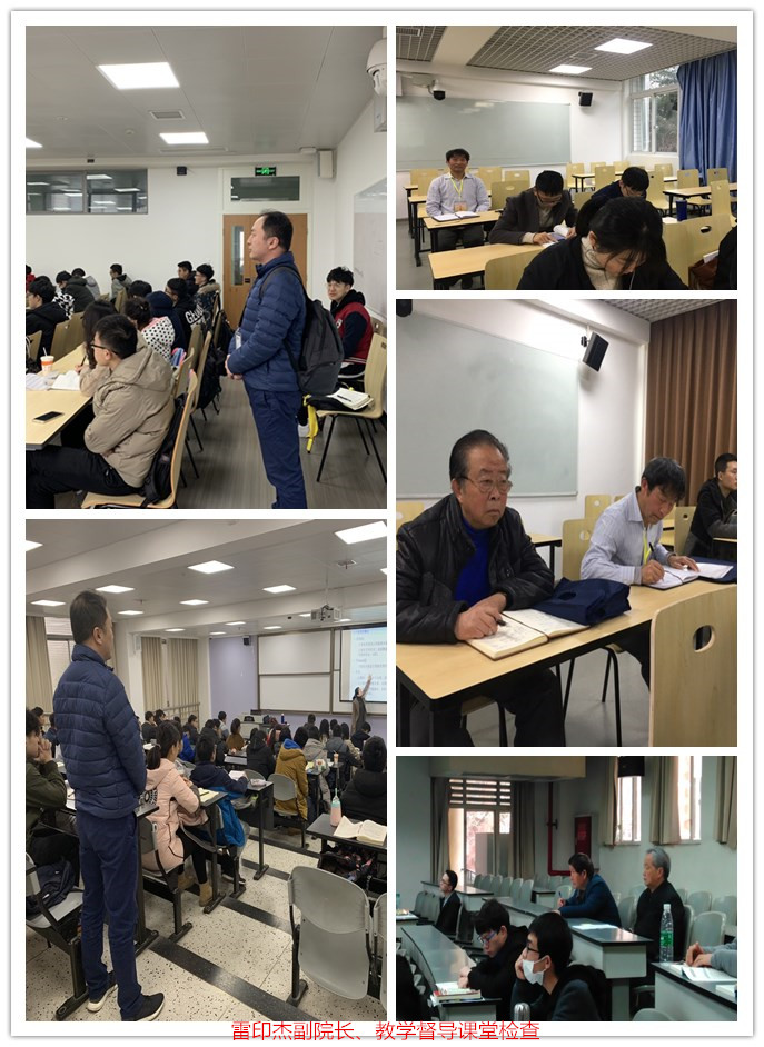 学院高度重视做好本科新学期开学教学各环节工作。正式行课前,教学院长雷印杰组织制定了开学教学检查安排(教学检查人员安排表附后),开学第一周安排全院正副职院领导参与检查,落实到每天江安、望江校区检查的领导和教务老师、辅导员老师,请退休教学督导一并参加听课检查。同时安排教务管理人员核查教学课表并QQ、微信、短信、电话通知,确保老师们知晓正式上课时间、地点,做好教材、授课准备,通知上课教师提前30分钟到岗,确定教室多媒体等教学设备正常使用,确保教学正常运行。陈笃海副书记督促各年级辅导员老师清点学生报到情况并提醒学生按时上课。