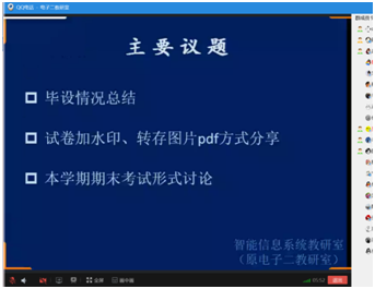 为确保疫情期间期末教学工作的有序开展,智能信息系统教研室于2020612日下午230召开线上教研室会议。