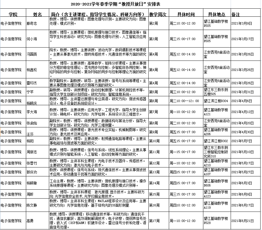 MX动漫 2020-2021学年春季学期“教授开放日”安排表