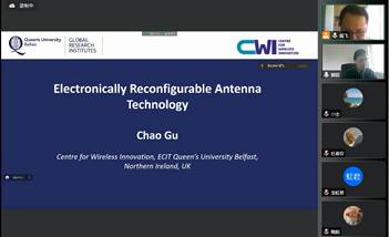 顾超博士的报告主题为《电可重构天线技术》。报告开始前,顾超博士首先介绍了英国贝尔法斯特女王大学无线通信创新中心的情况,鼓励大家有机会到英国交流。之后,顾超博士围绕方向图可扫描天线,频率可重构天线等方面的研究做了介绍;接着,介绍了女王大学在基于相变材料的可重构天线、先进封装天线、增材制造天线方面的最新进展。最后,顾超博士对听众的问题进行了详细耐心地解答,与师生进行了热烈的讨论。
