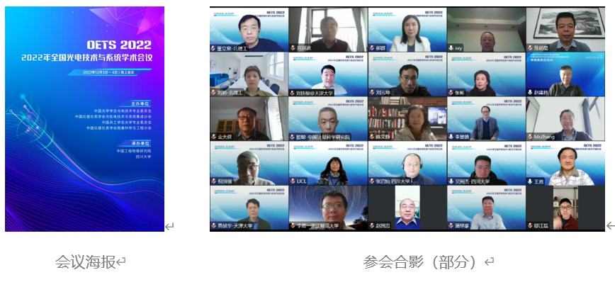共同承办的2022年全国光电技术与系统学术会议(简称OETS 2022)如期召开。为响应国家疫情防控相关要求,会议以线上方式举行。