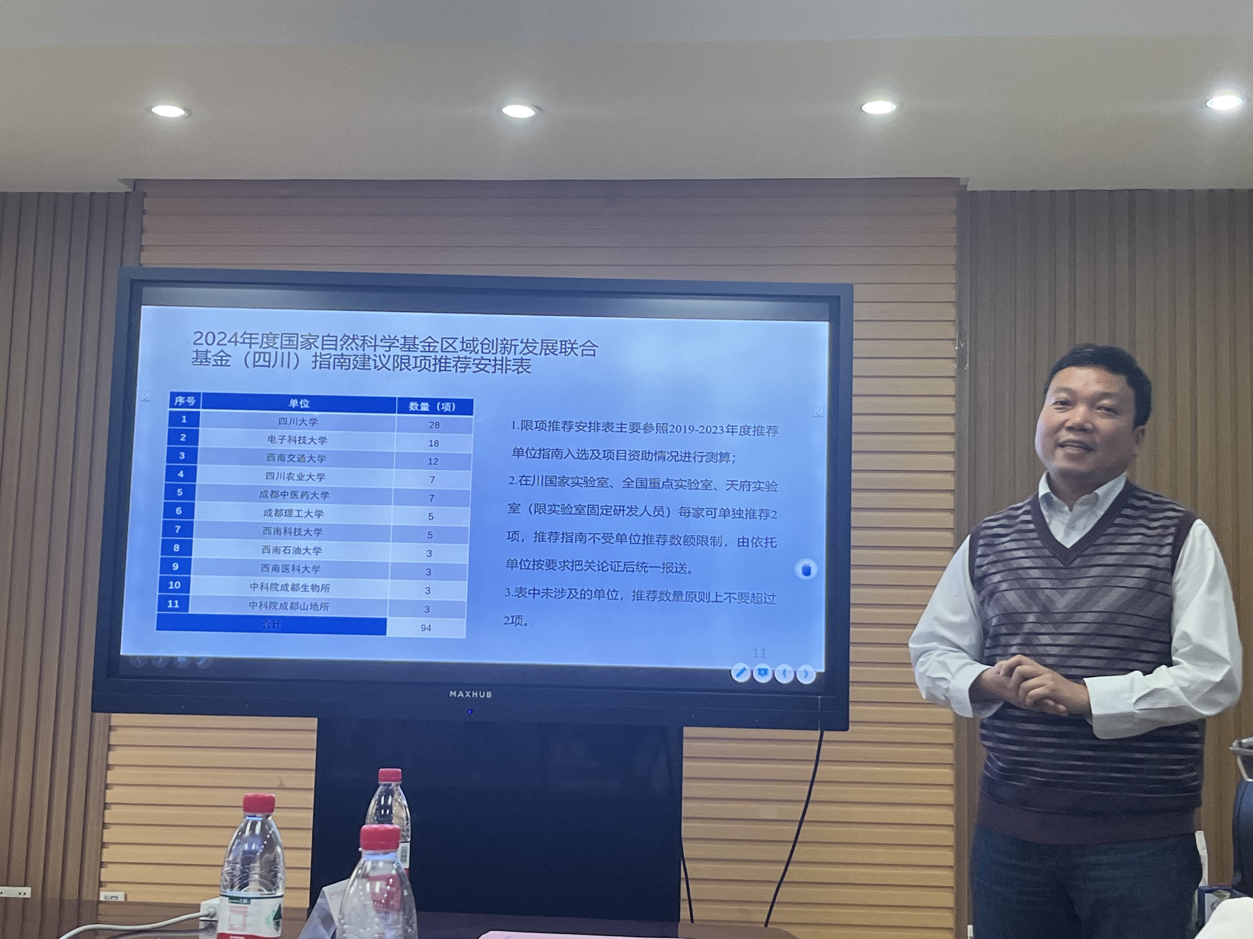 卿粼波副院长对本次会议做了总结发言,表示学院将从政策、经费和专家指导等方面全力支持老师们申报国家自然科学基金,努力提升学院基金申报数和申报质量,希望各位老师积极努力,实现各类基金项目的突破。