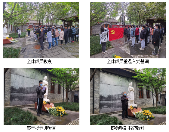 教职工新党员蔡苹杨同志代表新党员发言,他表示要铭记党的奋斗历程,弘扬爱国主义为核心的伟大民族精神,牢记党的宗旨,坚定理想信念,发扬党的进取精神。最后学院党委廖勇明副书记讲话,在清明节来临之际,我们组织党员来江姐纪念馆缅怀江竹筠同志,是贯彻落实习近平总书记关于“要把红色资源利用好、把红色传统发扬好、把红色基因代代传承好”的重要指示精神。江姐作为MX动漫 主要的红色文化育人资源,各位党员要认真学习江姐精神,不断加强对红色基因、红色文化的传承弘扬。希望大家始终坚定理想信念,始终做到对党忠诚,始终践行为民宗旨,始终勇担时代重任,始终严守党的纪律,在一点一滴、一言一行的坚守中,擦亮党员身份、树好党员形象。一朝入党、终生姓党。