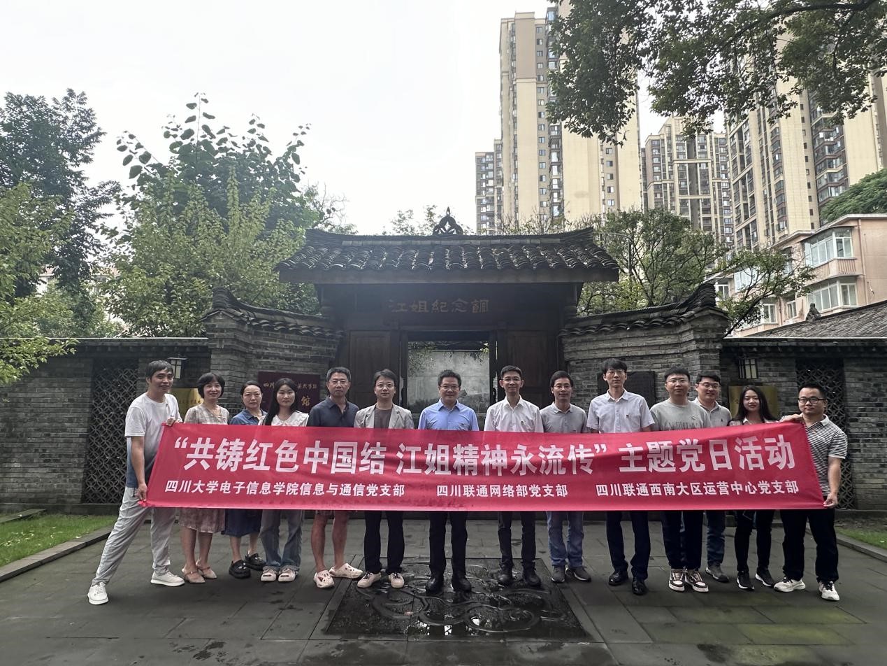 信息与通信党支部联合四川联通网络部党支部、四川联通西南大区党支部开展“共铸红色中国结 江姐精神永流传”主题党日活动。学院杨阳院长、卿粼波副院长,四川联通网络部李骁副总经理,信息与通信党支部党员,四川联通网络部党支部党员,四川联通西南大区党支部党员参加了本次活动。