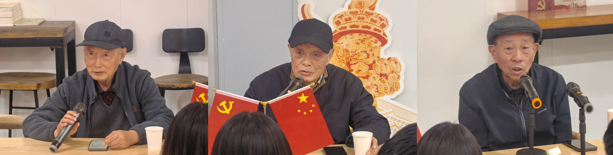 图为老党员孙思涛(左)、王宗年(中)、周本荣(右)作分享