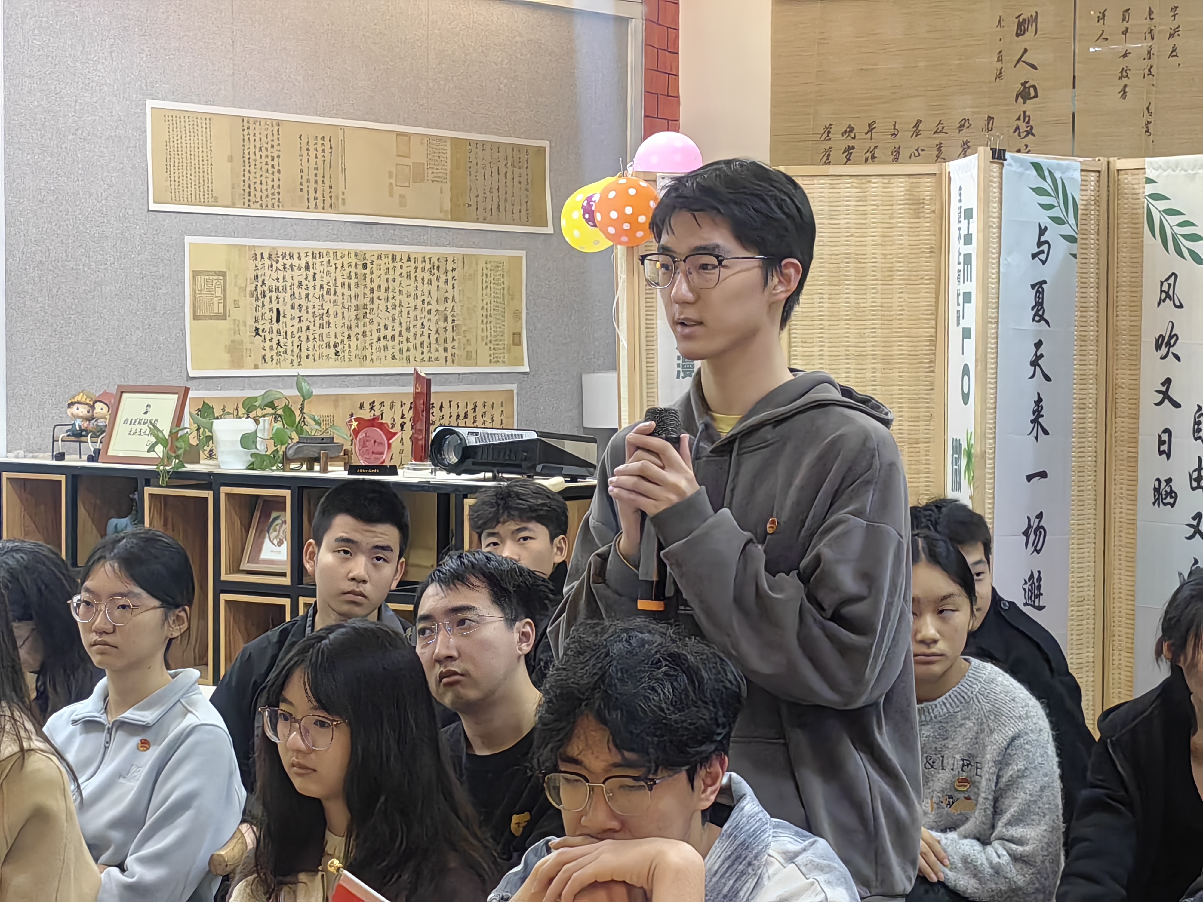在提问环节,入党积极分子踊跃提问。党员发展对象彭书睿就“自我沉淀与为人民服务的平衡”向老党员请教,老党员们勉励同学们,学生阶段应以学习为重,扎实沉淀本领,立足当下才能更好地服务社会。现场答疑真诚恳切,让同学们深受启发。