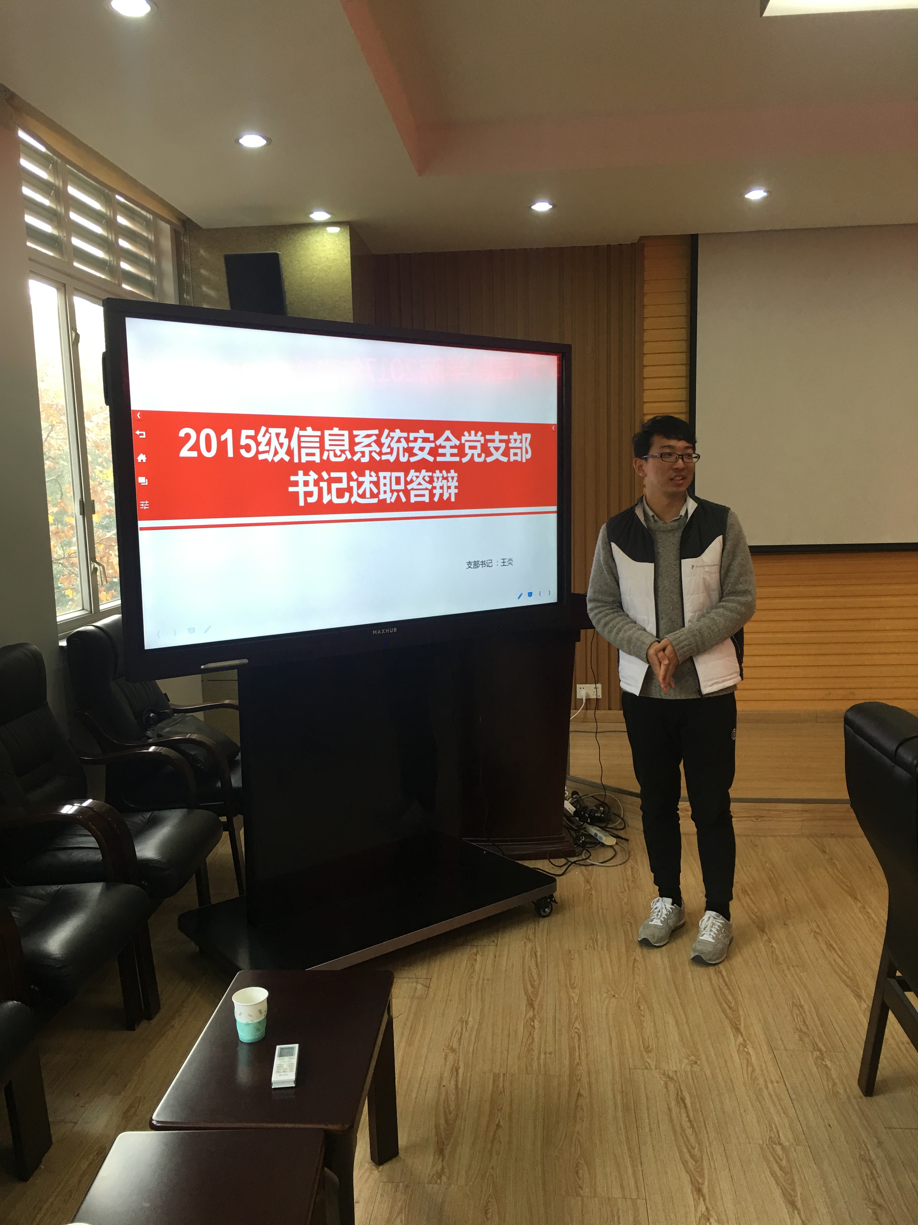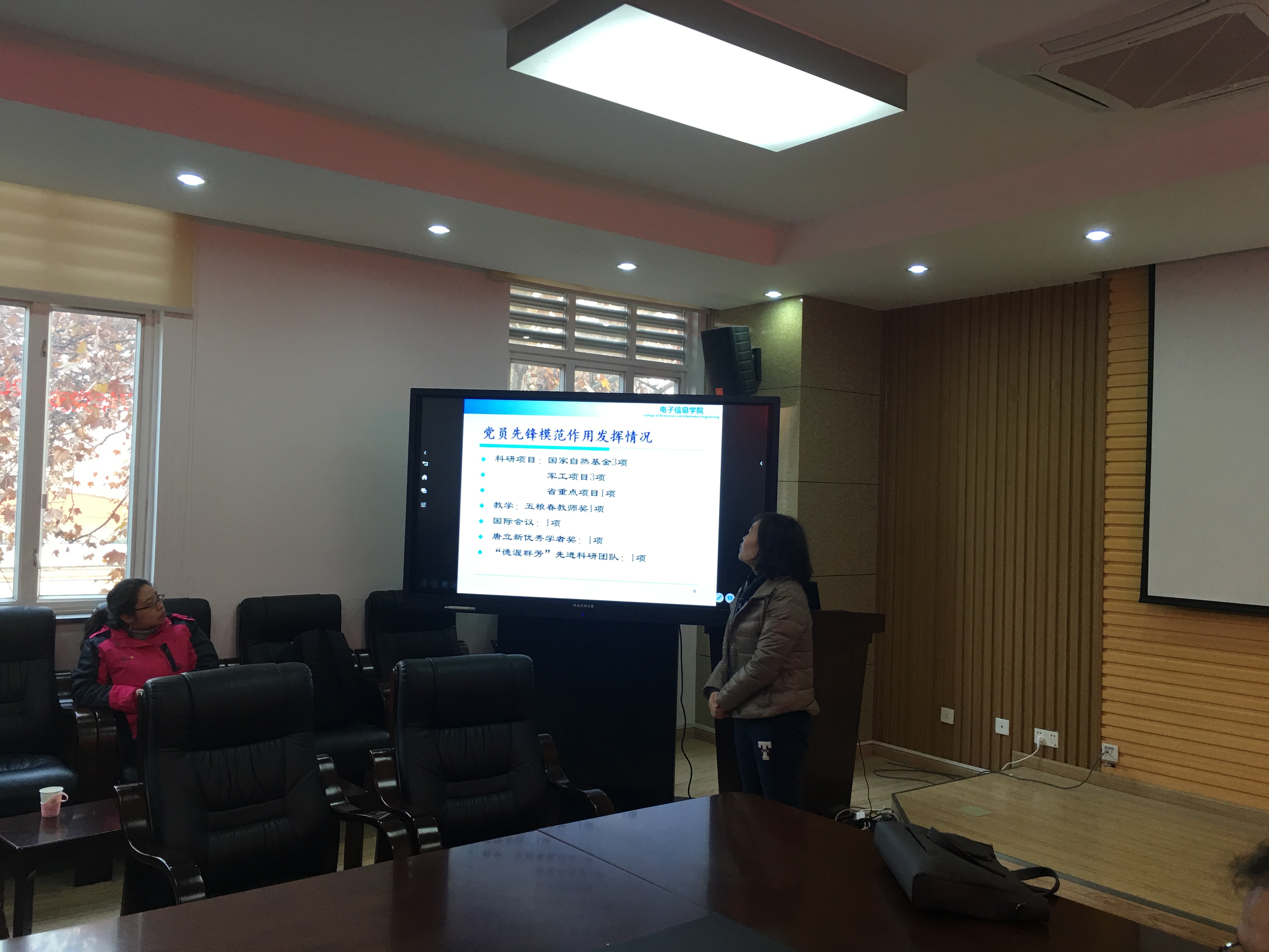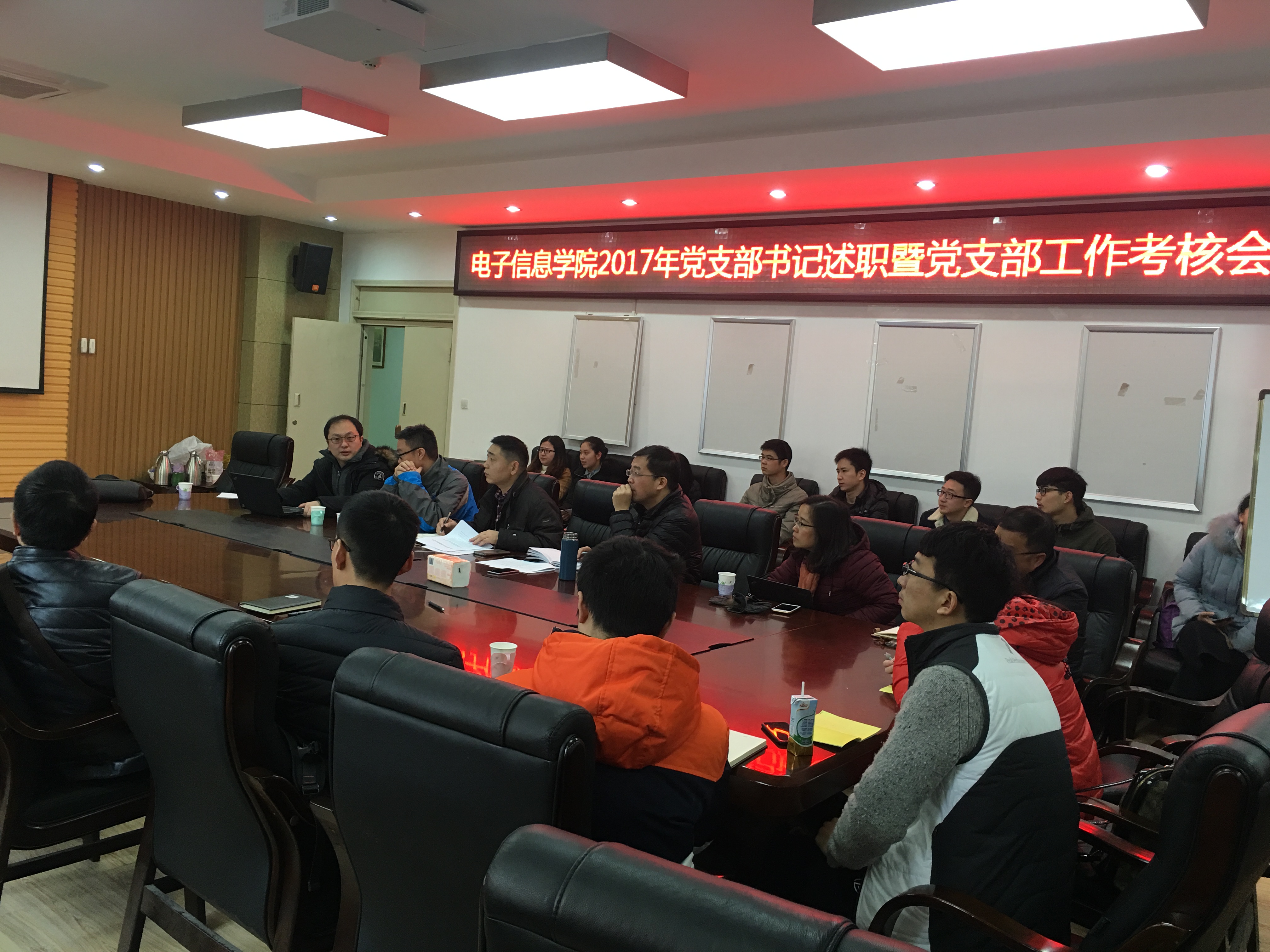 在教学楼A303进行了2017年度教职工和学生党支部书记述职会议。学院党委委员全部到会,听取了各支部书记对2017年党建工作的总结。述职会上,各个党支部书记结合自己一年来的任职情况,认真落实了三会一课、十九大学习、全国思政会、两学一做常态化,总结工作中的经验得失,提出支部建设中遇到的问题和困难,进行了深刻、务实的分析和反省。各个支部都展示了自己的亮点,教职工支部谈到了如何从教学和科研两方面落实和学习十九大精神,学生支部则开展了各种活动来学习十九大精神,采取了线上和线下两种方式来定期学习政治理论知识,理论联系实际。学生支部之间还互相进行交流,推进政治学习和学业相促进相融合。