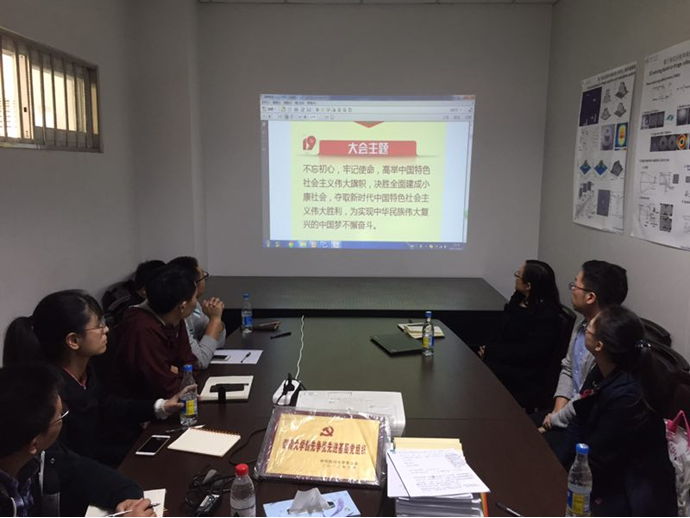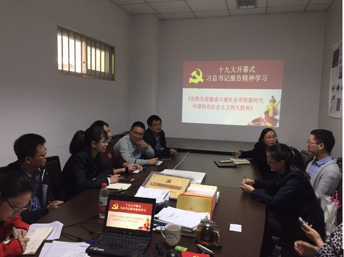 望江校区基教A119会议室召开了“十九大精神”学习座谈会。原党支书张启灿教授、换届选举产生的新任党支部委员:书记李玮副教授、副书记兼组织委员邓欢副教授以及宣传委员钟哲强老师和支部其他党员一起学习了《决胜全面建成小康社会,夺取新时代中国特色社会主义伟大胜利》的报告,该报告深入浅出地围绕十九大报告内容,宣扬了十九大精神。