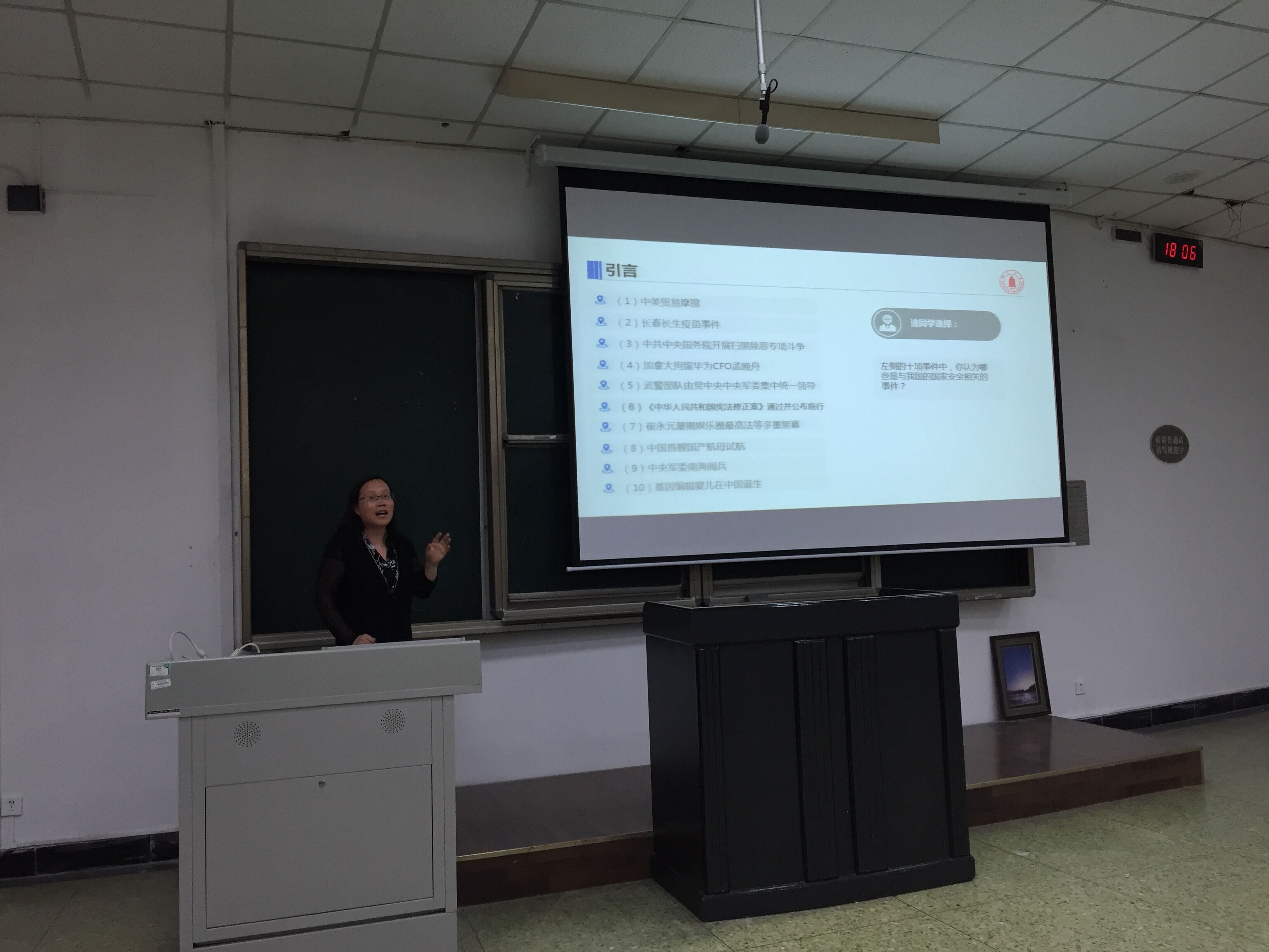 院长冯国英教授为学院2015级部分本科生讲授了题为《“国家安全”知多少》的思想政治理论课。