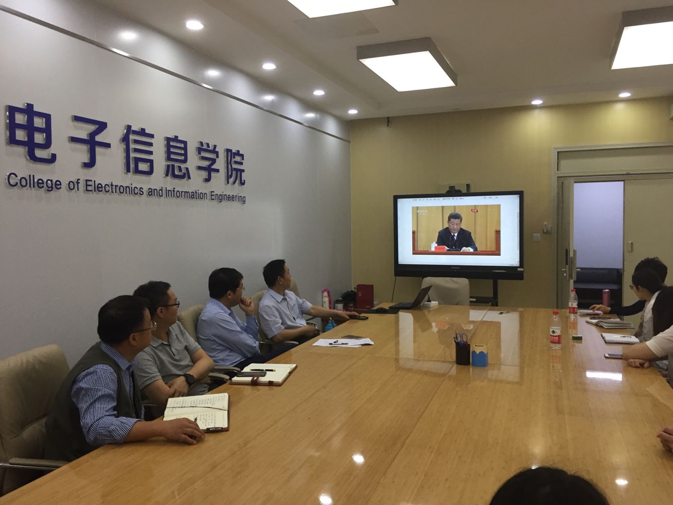 开展了收看纪念五四运动100周年大会活动,参加本次活动的有学院全体院领导、党委委员、纪委委员、科级干部、辅导员、教工及学生全体党支部书记参加了会议。