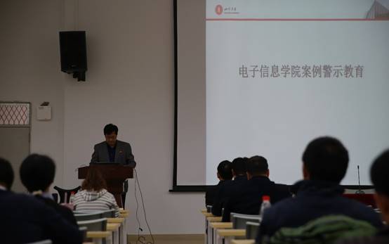 4月16日,学院在望江校区西五教学楼附101室召开了全院警示教育大会,通报近年来高校发生的违纪违法典型案例。学院班子成员和全体教职工参加了本次会议,会议由学院党委副书记陈笃海主持,党委书记邰明松主讲。