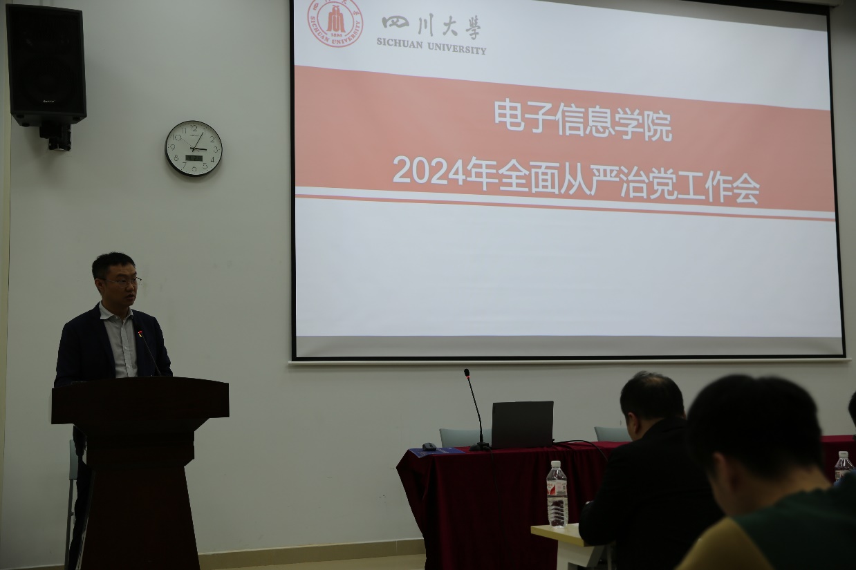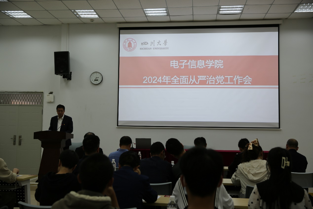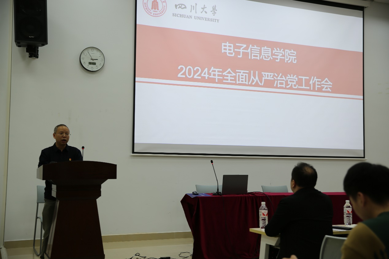 学院党委书记邰明松同志全面传达了学校2024年全从严治党工作会的精神,并结合学校会议的精神,从深化拓展主题教育成果,坚定不移用党的创新理论凝心铸魂,聚焦“两个维护”深化政治监督,推动党中央重大决策部署和学校要求落地见效,深入开展“三个一流”创建活动,着力锻造坚强组织、过硬队伍,常态长效落实中央八项规定精神要求,推动作风建设持续走深走实,坚持严的基调深化纪律建设,提升一体推进“三不腐”效能,深入推进党的自我革命实践,推动全面从严治党体系更加健全完善等方面对学院2024年全面从严治党工作进行了部署。他强调,要坚定不移地推动全面从严治党,全力营造风清气正的政治环境,为学院高质量推进“双一流”建设提供坚强保障。