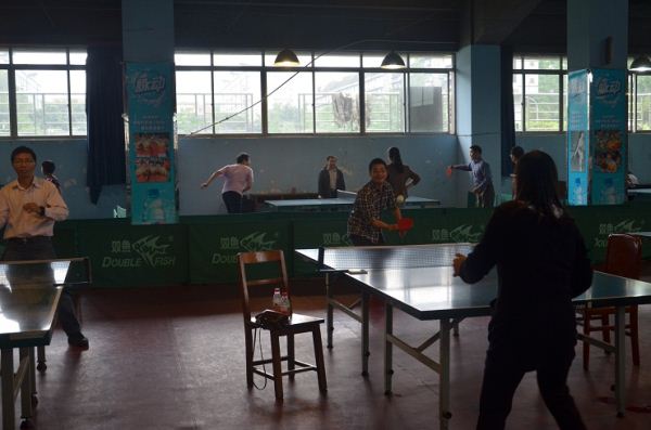 2013年教职工乒乓球友谊赛在川大体育中心乒乓球馆完美上演。比赛共吸引了来自全院的40余名教职工选手。学院蒋斌书记、陈笃海副书记、工会熊淑华主席亲临比赛现场并参与了比赛,最终余艳梅、杨晓敏老师,王君、吴小强老师,余艳梅和王君老师分别问鼎女双、男双、女单、男单各项。