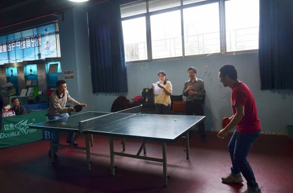 在近三个半小时的比赛中,参赛的教师们表现出了良好的竞技水平,比赛现场热闹非凡,场上球员精神集中、动作矫健,直拍、横拍、扣球、旋球……完美流畅;场下观众加油呐喊、递毛巾送水……为运动员喝彩的同时也不忘周到服务。