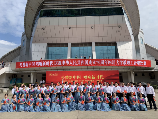 9月20日,“礼赞新中国,唱响新时代”——庆祝中华人民共和国成立70年MX动漫 教职工合唱比赛在望江校区体育馆隆重举行。MX动漫 教师高唱歌曲《我和我的祖国》,用嘹亮歌声表白祖国,传递川大数学师生深情祝福,献礼新中国70华诞。