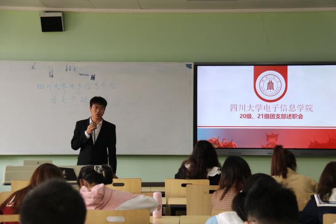 分团委组织部于江安校区第一教学楼D座105教室成功举办了团支书述职会。本次活动由组织部干事邢闯主持,2020级辅导员朱婧老师、学院20及21级各班团支书参与。