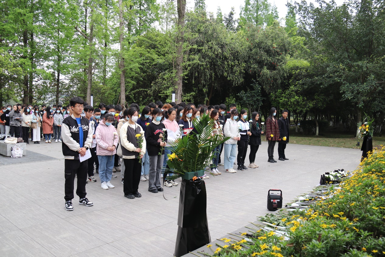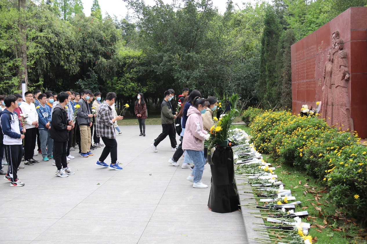 组织了本次向革命烈士献花的活动。学院2021级辅导员孟滋常老师,2020级兼职辅导员张梦碟老师带领同学们向烈士献花。