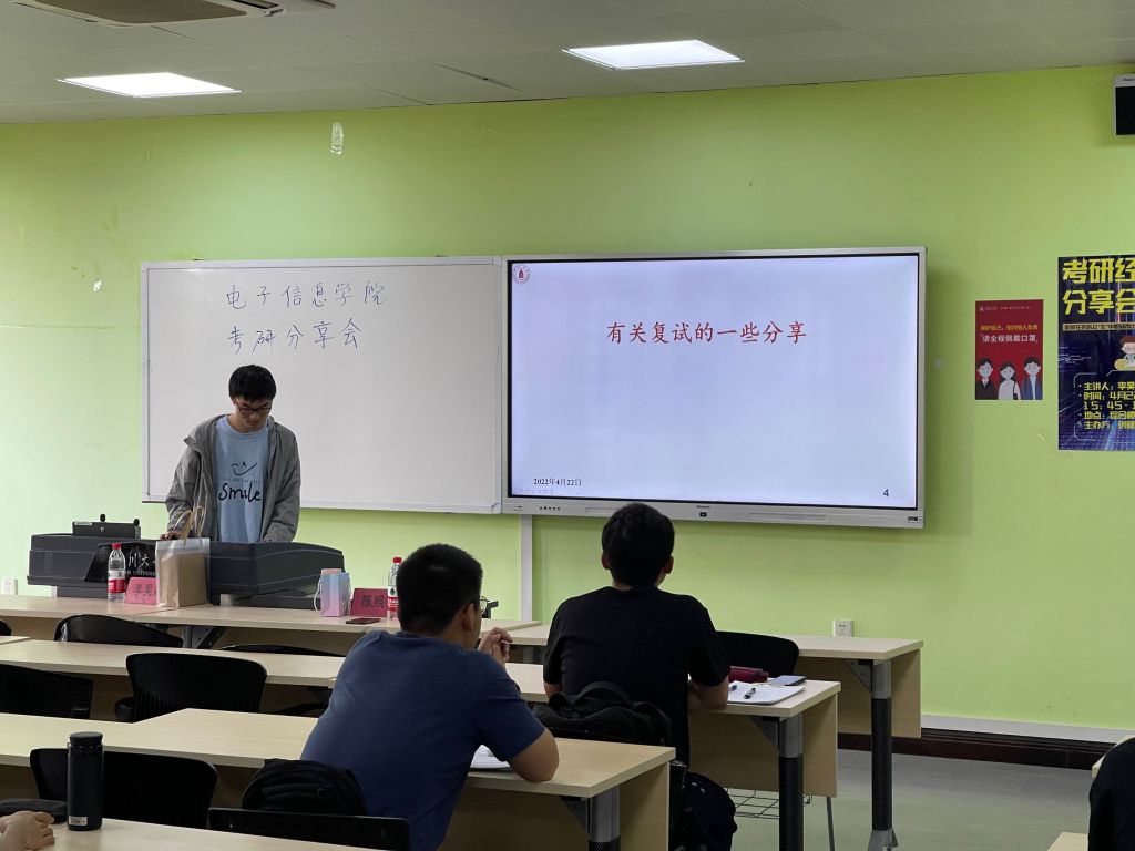 2018级本科生,电子信息工程专业卓越工程师班,考研至北京邮电大学)就思想心态、择校方法、备考技巧等方面分享经验。在思想心态上,李昊鹏学长告诉同学们要尽早做好打算并且在下定决心之后努力认真备考,不轻易放弃;在具体备考方法上,学长告诉同学们要利用好各种线上资源,与老师同学多交流等。