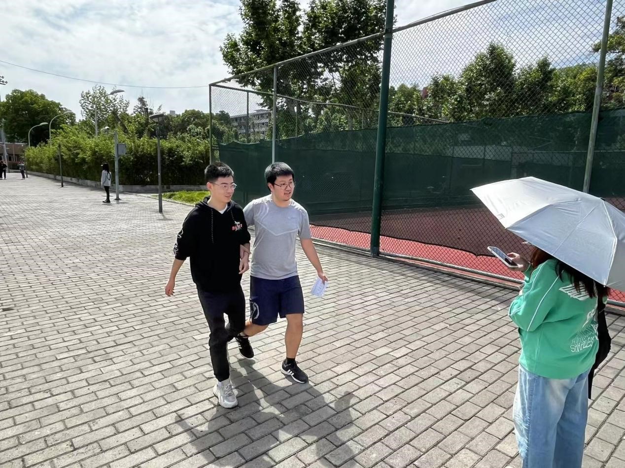 门前空地集合,待工作人员宣布活动要求、分发打卡记录表后,各组同学马上积极投入定向活动中。活动共设置了组合踢毽子、羽毛球对决、画笔传情、运动知识问答和齐心协力五个主题任务,分别散落于学校的各个角落。