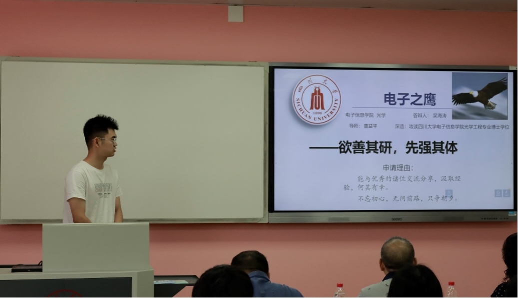 获得电子之鹰奖项的优秀同学。在一段主持人李鸿烁简短的开场白之后,活动正式开始。此次答辩的同学较多,包括本科的升学、就业、出国以及研究生的深造和就业。