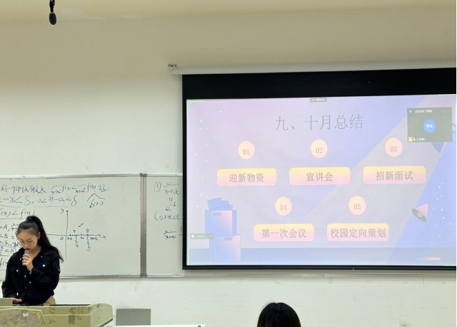 (图三:沈琳鸿同学正在总结科技园外联部十月工作)