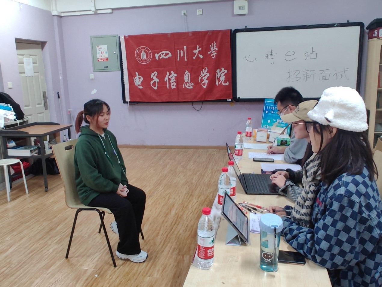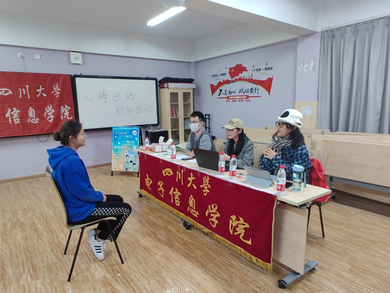 望江校区与江安校区同步开展了招新面试,2022年度招新工作顺利完成。其中,望江校区招新面试地点为东区第三教学楼电子“心晴e站”活动室,学生副站长杨斯涵为面试主负责人;江安校区招新面试地点为MX动漫