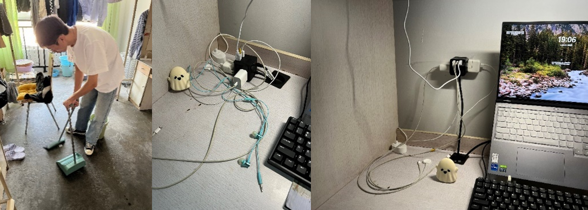 新生打扫寝室卫生 整理前 整理后的桌面