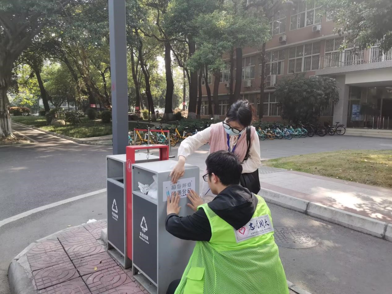 10月22日14点,在学院分团委副书记何阳老师的指导下,学院研分会组织本院研究生志愿者在校区内各学生公寓、教学楼、图书馆和校园街道等人员活动密集的地方,张贴关于“绿色环保,垃圾分类”、“节约用电,人人有责”、“参与垃圾分类,保护地球家园”等宣传标语,以此营造节能降碳、绿色环保的氛围,提高同学们的环保意识,用实际行动守护我们的美丽校园。同时,对校园内共享单车车筐遗留的塑料袋、水瓶等垃圾进行了清理,并对单车的停放进行整理,进一步美化校园环境,营造干净卫生的公共空间。此外,通过校园公共服务,强化同学们公共服务意识和社会责任感,培养他们主动作为的奉献精神。