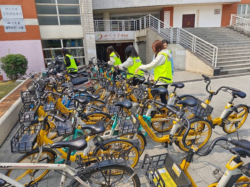 宣讲活动结束后,实践创就中心组织开展践行雷锋精神志愿活动,志愿者们对基础教学楼公共区域进行垃圾清理,并前往研究生院、文华活动中心、学生宿舍周边等共享单车停放较多的区域,对共享单车进行有序摆放并清理了车筐的垃圾。此外,为持续营造良好的校园卫生环境,志愿者们还向在校同学发出了“爱护校园卫生环境”的倡议。