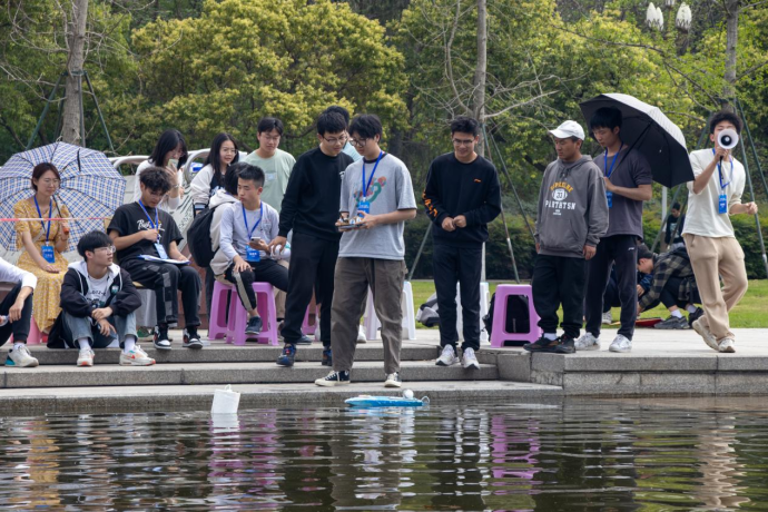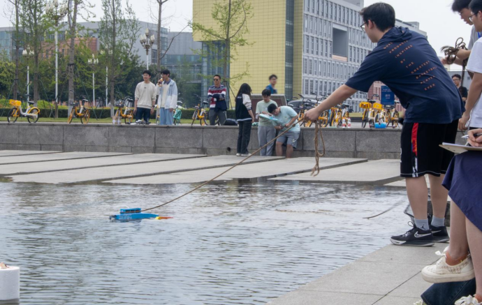 江安校区顺利举行。初赛分为两个阶段,第一个阶段是上午在青春广场展示船模并进行外观评分活动,通过同学与专业人士的评分给出船模的外观总分。第二阶段则是在下午的景观水道上通过水上竞速决出通往决赛的名额。