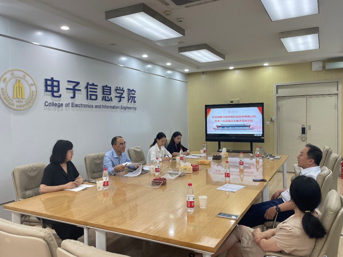 会议开始,雷印杰副院长对成都贝瑞光电科技股份有限公司张董一行人的到来表示热烈的欢迎。随后,双方针对本次实习工作具体的安排内容进行了详细的沟通和讨论。