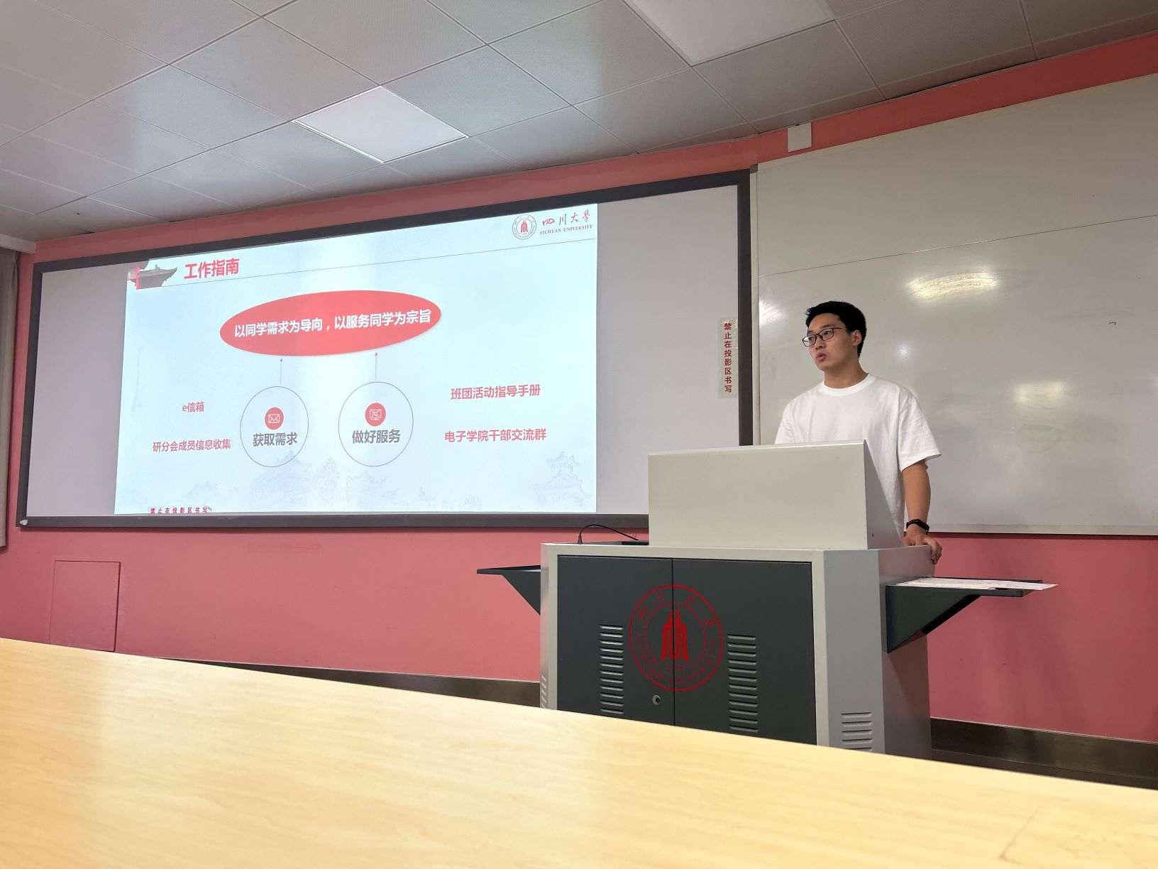 郭俊峰同学汇报电子研分会过去一学年的工作内容