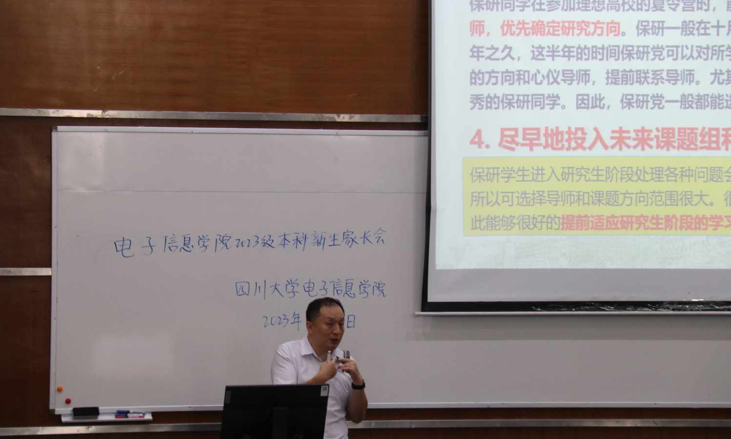 、师资队伍、培养体系等方面详细地向新生家长做了介绍,希望同各位家长一起帮助新生在学院度过充实美好的四年时光。雷印杰副院长详尽地介绍了学院本科生培养方案的内容,就考研、保研、出国、就业等不同形式的本科毕业发展方向进行了对比分析。
