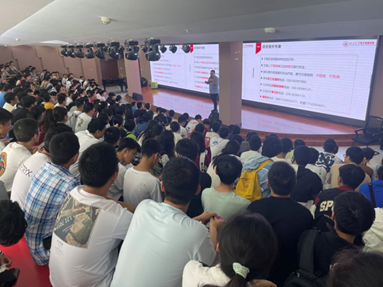 大会伊始,申老师着重强调了在校期间以及国庆假期的安全问题,请广大同学们注意自己的人身安全,谨防意外发生。老师从个人安全、财产安全、离校注意事项等方面进行了提醒。她首先提及的是最为重要的个人安全问题。申老师强调要注意交通安全,不购买违规改装车辆,在校使用电瓶车等要合法合规。同时,不管是在校内外都要注意个人财产安全、用电安全以及用水安全等。随后申老师就学校的请销假制度和同学们做了详细的解读,并强调了一系列注意事项。他在最后强调了关于讲座纪律的问题,就上午黄卡玛院长讲座出现的睡觉,玩手机等现象进行了严肃批评。最后,陈林老师提醒同学们不要做精致的利己主义者,要有奉献精神、服务意识。