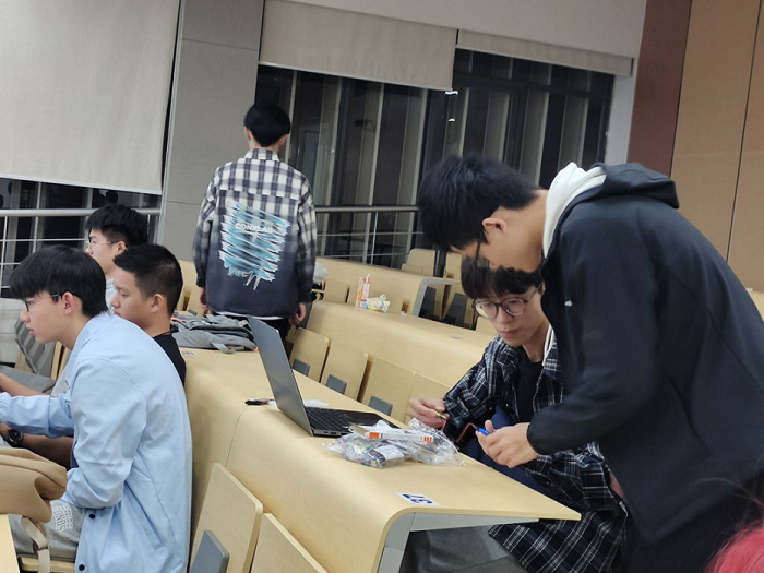 图3 部长正在帮助同学进行单片机的连接