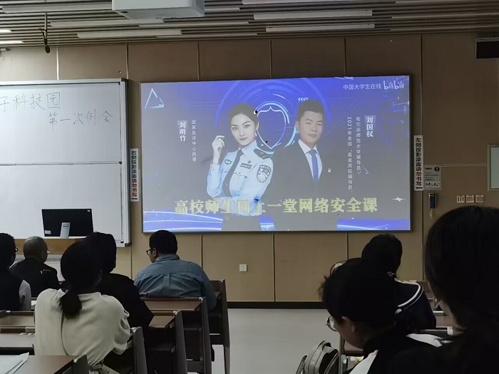 院党委副书记兼纪委书记廖勇明,大一年级辅导员申鑫,学院分团委副书记、大一年级辅导员陈林,电子科技园全体干部、全体干事参加了本次会议。本次网络安全教育活动,科技园全体干部与干事们通过观看一堂网络安全教育课的视频系统地学习了相关知识。课程先是阐述了网络诈骗的损失大、范围广、危害重的特性,随后通过讲述诈骗的具体手段列举了网络诈骗的高发类型,如刷单返利类诈骗、冒充公检法诈骗、冒充客服类诈骗、虚假投资理财诈骗、虚假网络贷款诈骗等。面对千变万化,无孔不入的电信网络诈骗,遵循“三不一多”原则,下载国家反诈APP则是我们有效的防范手段。从总体上学习完电信网络诈骗后,课程又以网络的原住民——我们大学生的视角,从实例出发讲述了电信网络诈骗的类型,如虚假购物诈骗、虚假征信诈骗、冒充熟人的诈骗等,并阐述了大学生遭遇电信网络诈骗的种种原因。