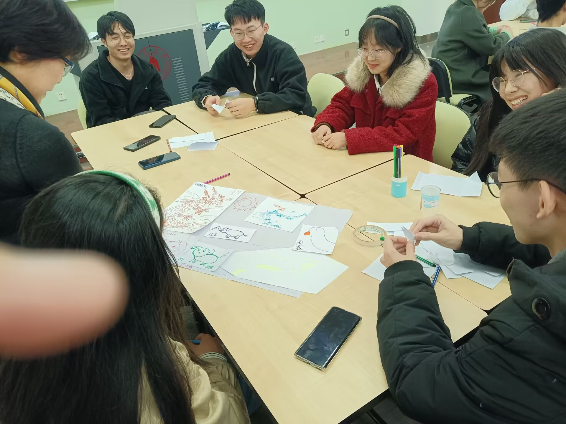 在本次团辅活动中,何惠老师首先组织大家进行了心理放松,接着引领大家描绘一幅“自己最喜爱的动物”的绘画,并通过每位同学的绘图结果,对大家的心理状况进行了分析讨论。然后以小组为单位,在组长的带领下,同学们共同构建动物园。
