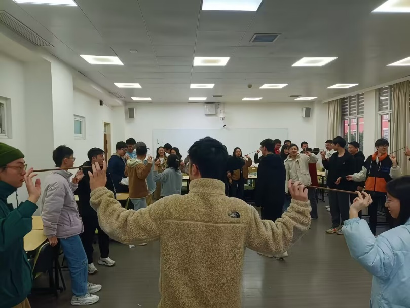 其次,何惠老师通过演示,带领大家进行了团队组合版的“筷子舞”,帮助同学们领悟到在人际关系交往中需要共同努力去维护一段关系,要聚焦于有意义的人际关系,进而提升人际关系质量。