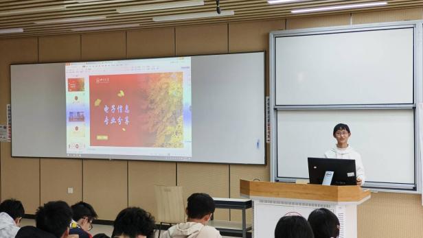 图为轻工科学与工程学院黄紫莹同学进行专业分享
