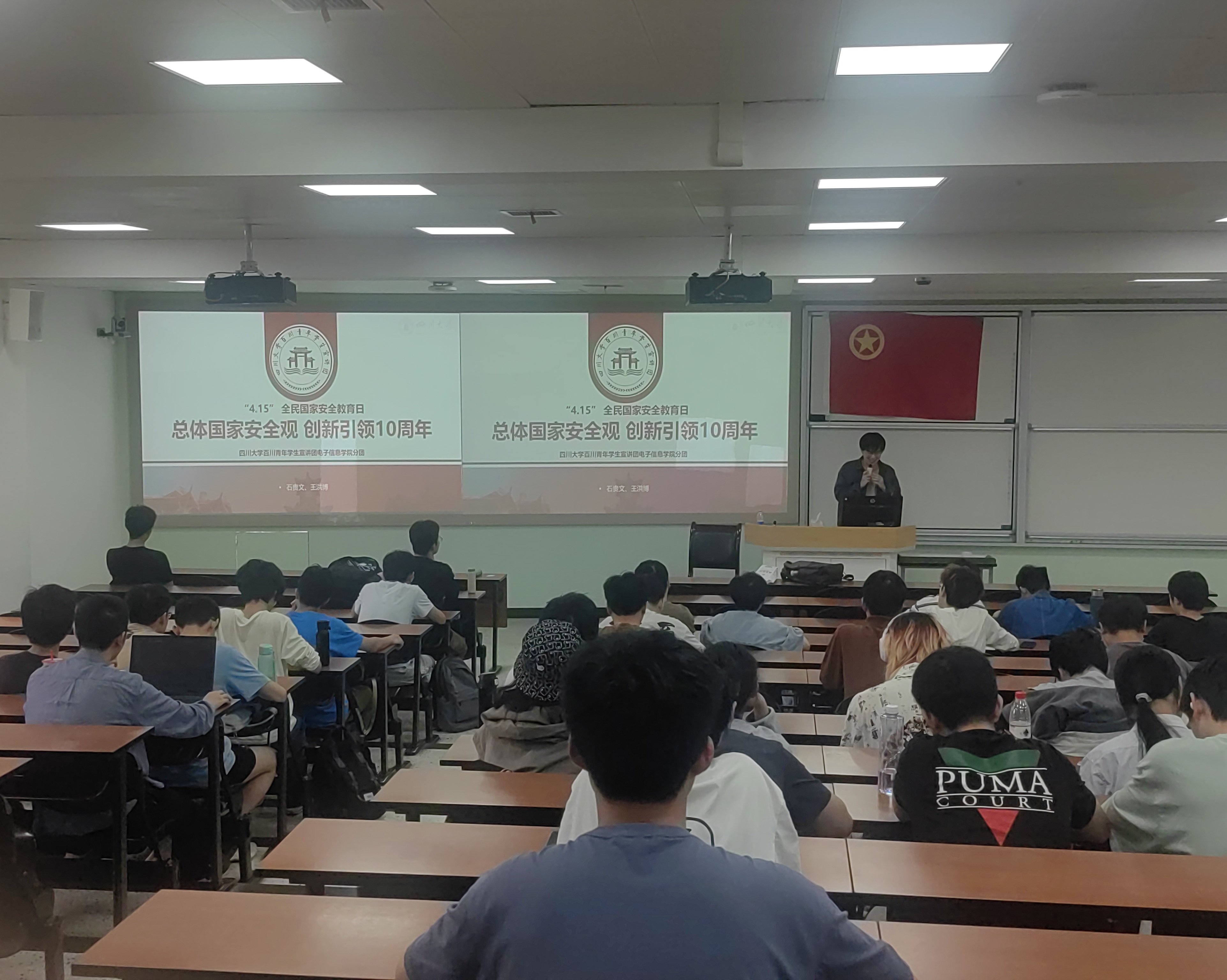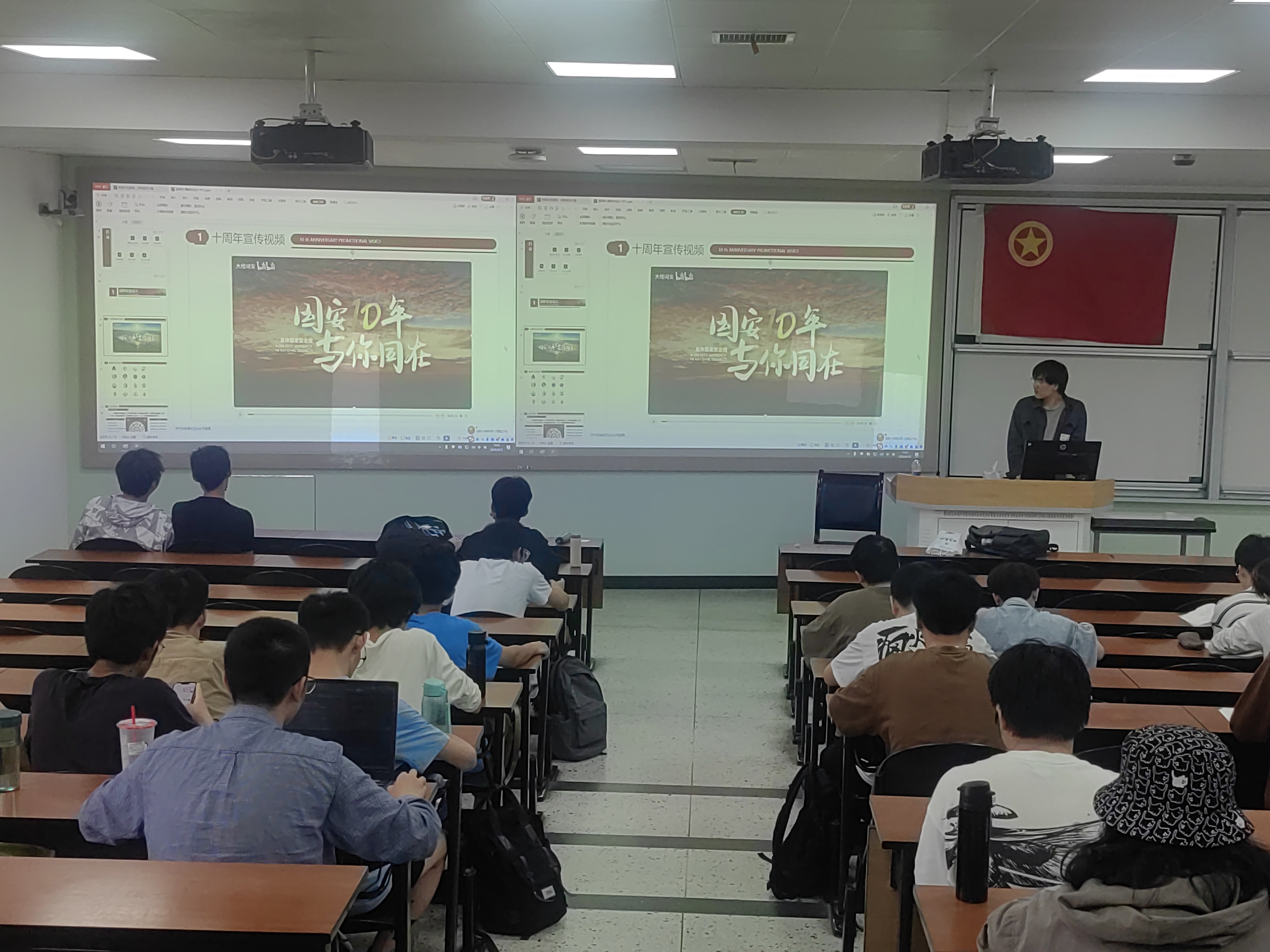本科2022级三班团支部的团员青年们齐聚江安校区一教B307,开展了以“总体国家安全观,创新引领十周年”为主题的教育活动。