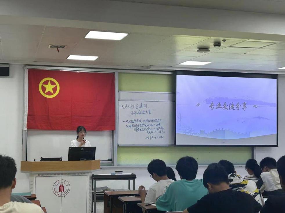 2023级1班团支部的付昀鑫同学和网络空间安全学院2023级网络空间安全与法学专业201团支部的田馨月同学分别介绍了自己所学专业的特点和发展方向。在本环节中,两个团支部的成员对彼此的专业都有了深入地了解,并对以后能够进行专业融合研究学习表示期待。